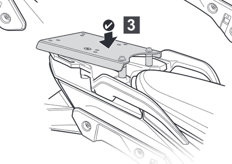 Chuẩn bị: Đảm bảo rằng bạn đã có bộ giá đỡ SHAD Top Master cùng với đế lắp thùng SHAD (không bao gồm trong thùng TERRA).
